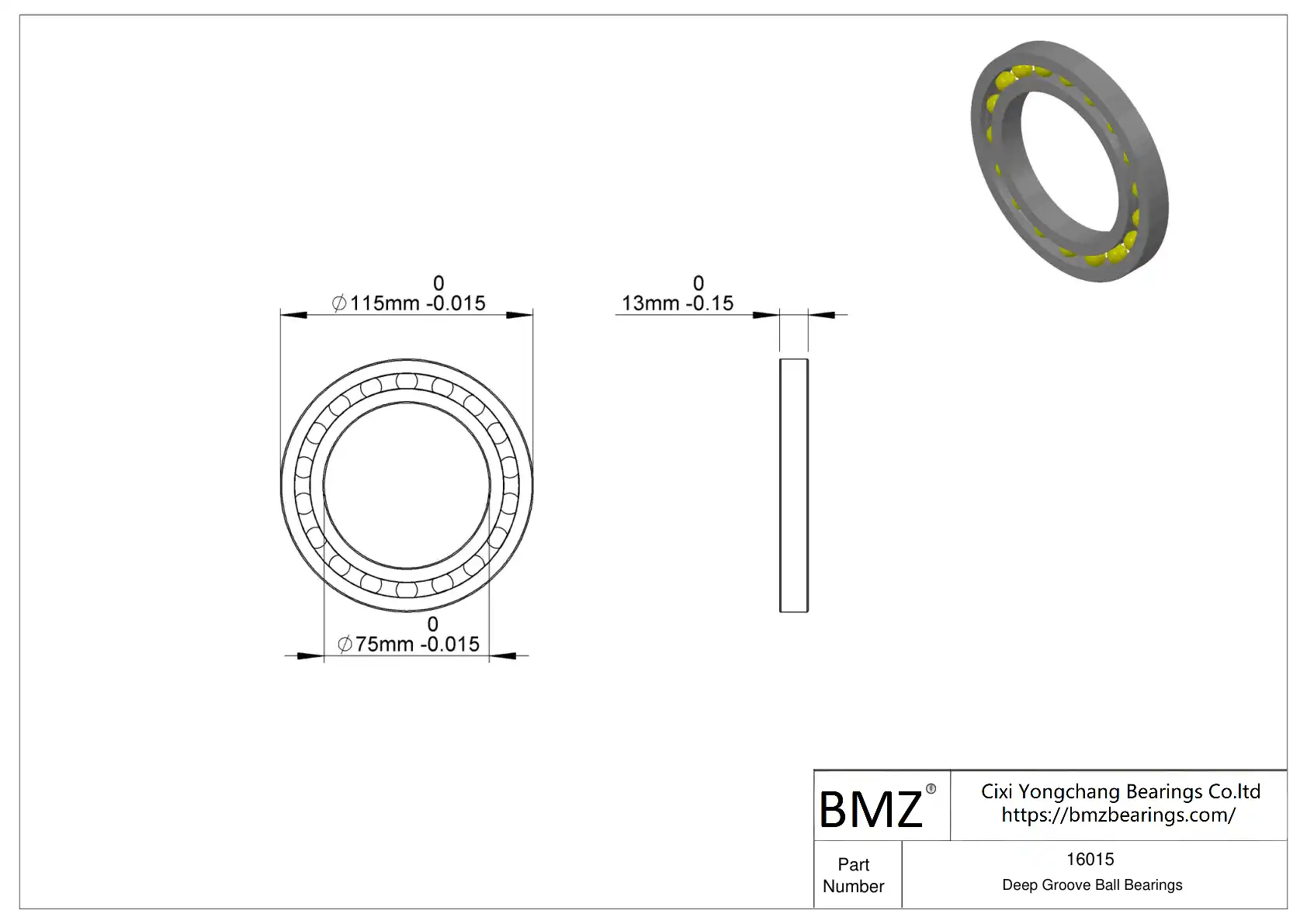 16015 Bearing is constructed with a single row of balls, a deep groove raceway in the outer ring, and is known for its robustness and durability. It can offer a highly adaptable and efficient solution for a multitude of mechanical applications.