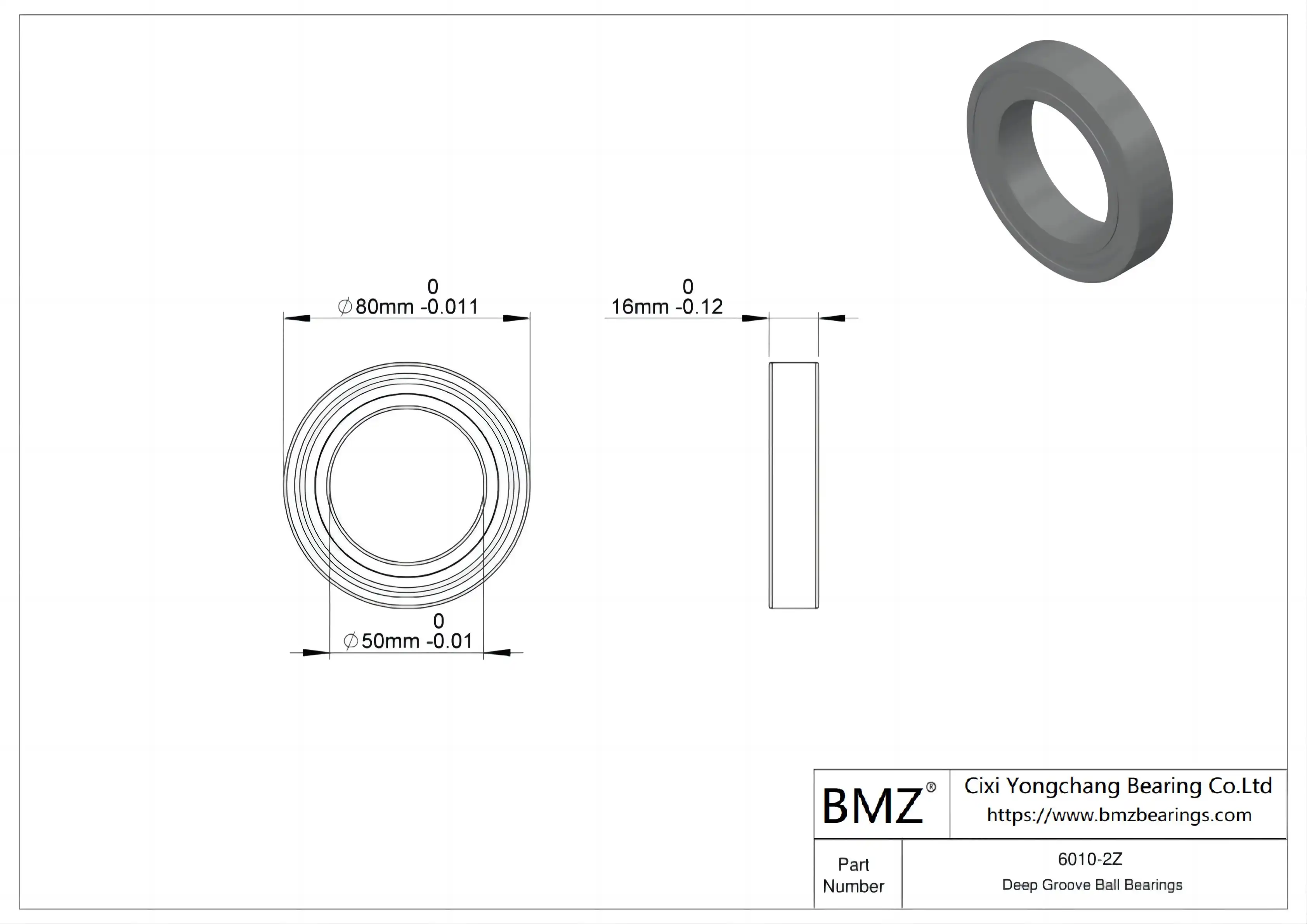 6010 ZZ Bearing is constructed with a single row of balls, a deep groove raceway in the outer ring, and is known for its robustness and durability. It can offer a highly adaptable and efficient solution for a multitude of mechanical applications.