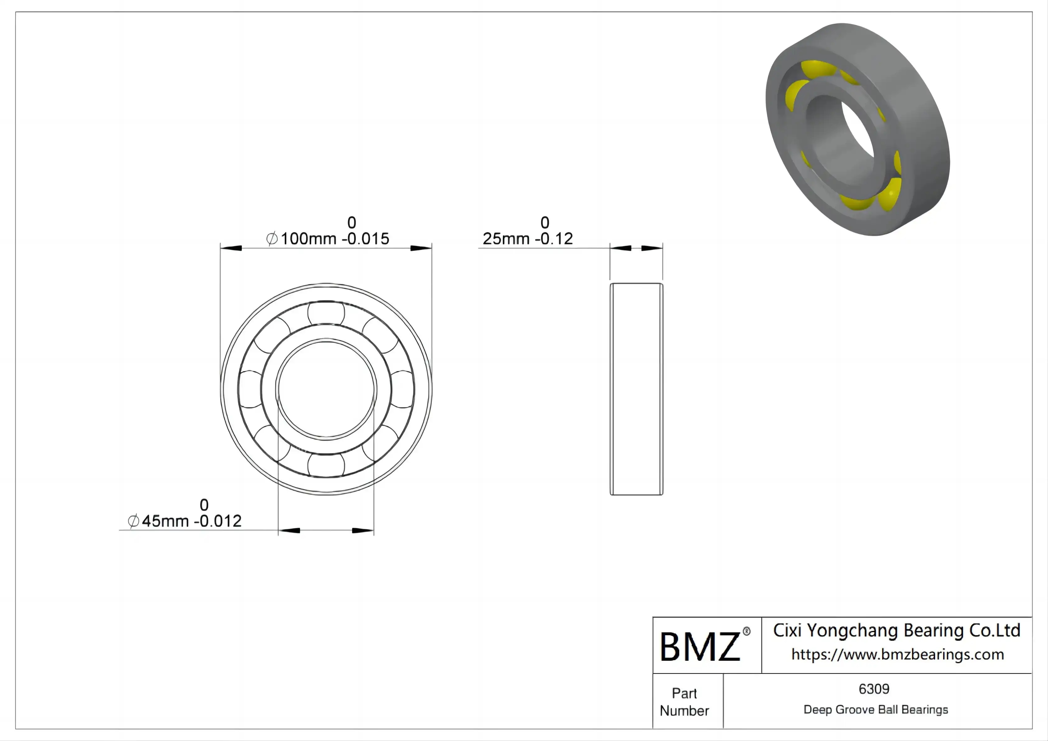 6309 Bearing is constructed with a single row of balls, a deep groove raceway in the outer ring, and is known for its robustness and durability. It can offer a highly adaptable and efficient solution for a multitude of mechanical applications.