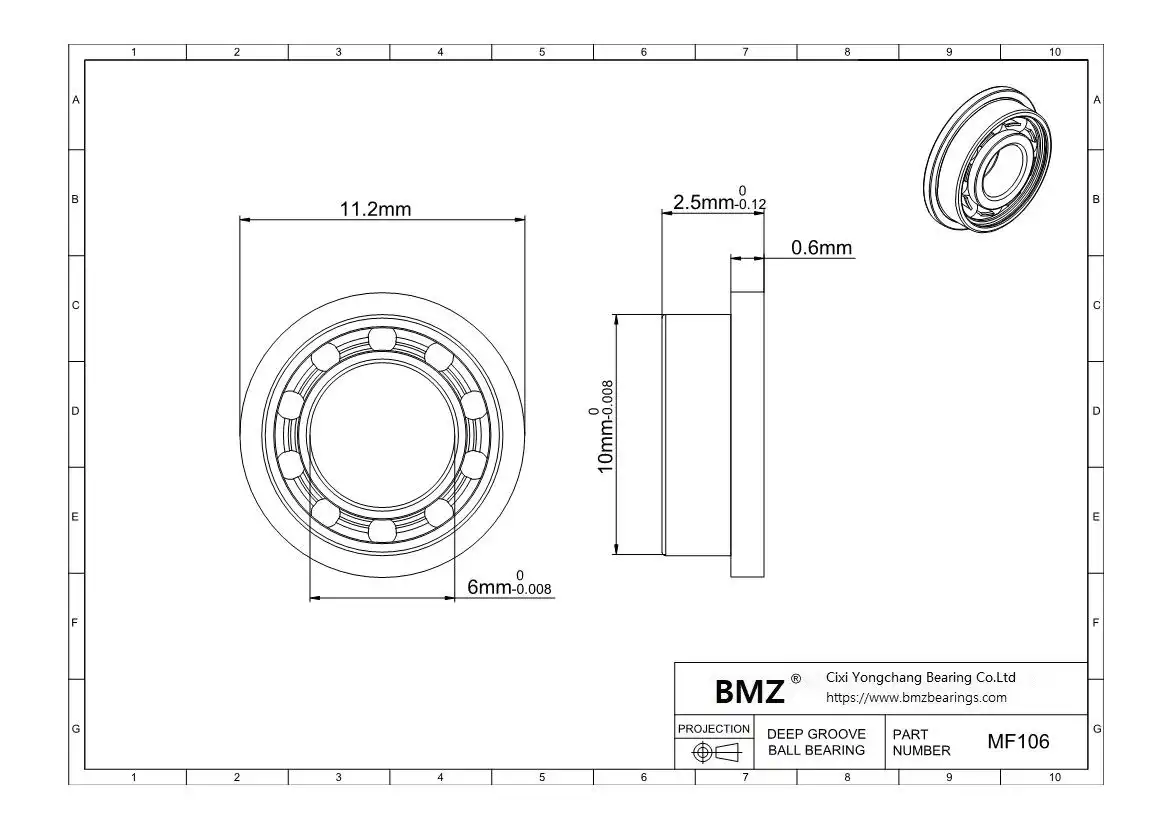 MF106 Bearing is designed to effectively handle radial loads, provide precise alignment and facilitate easy mounting in applications where axial positioning is essential.. Its robust construction and flange design can offer reliable performance and extended service life.